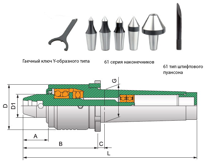 2. Для SC-61-M-3A/4A/5A, Y-образного гаечного ключа и наконечников 61 типа и штифтового пуансона 61 типа.
