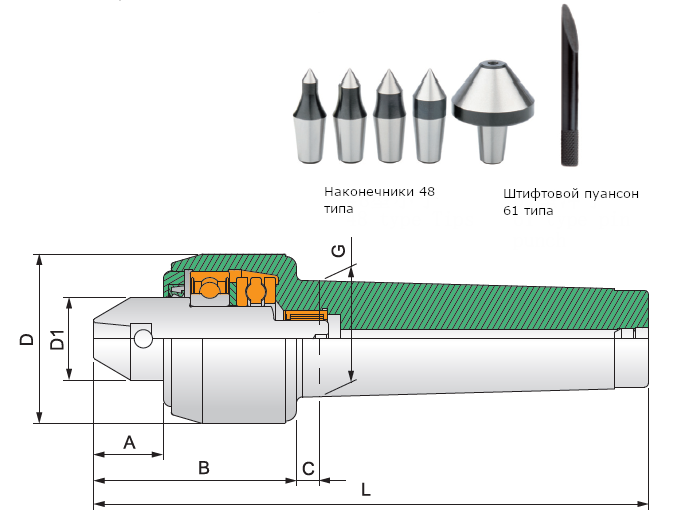Принадлежности 48 типовых наконечников и 61 типовой штифтовый перфоратор.