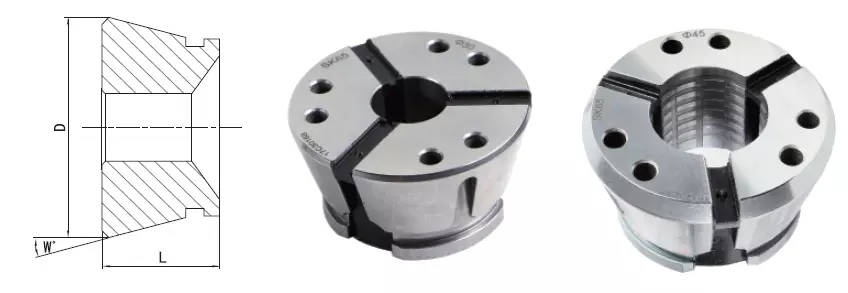 2, С цангой пружинного типа, если отверстие точно не соответствует диаметру обрабатываемой детали, контакт будет уменьшен, что приведет к снижению точности и силы захвата.