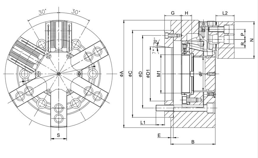 Шесть кулачков. Больший зажим точки контакта, это может улучшить проблему деформации во время процесса зажима для тонкостенной трубы или кольцеобразной заготовки.