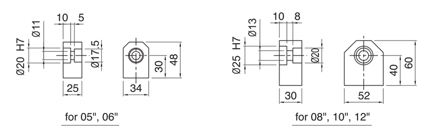 | 2F-06 | M10 | 15 | 56 | 36 | 20 | M10 | 57.5 | 40 | 4-M8 | 64 | 50° |