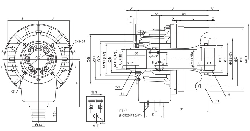 | H-0928 | 34 | 53 | 4 | 4-M4x7 | 5 | PT 1/4" | 6 | 116 | M34x1.5 | 32 | 15 |
