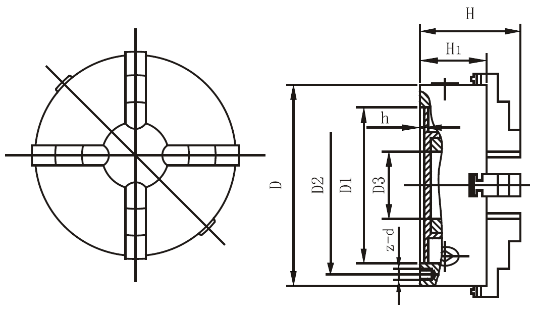 D1 | D2 | D3 | H | H1 | h | z-d |